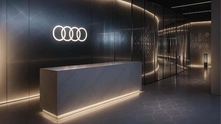 Audi’s identity is woven in quietly, through symmetry, clarity, and a sense of thoughtful design.