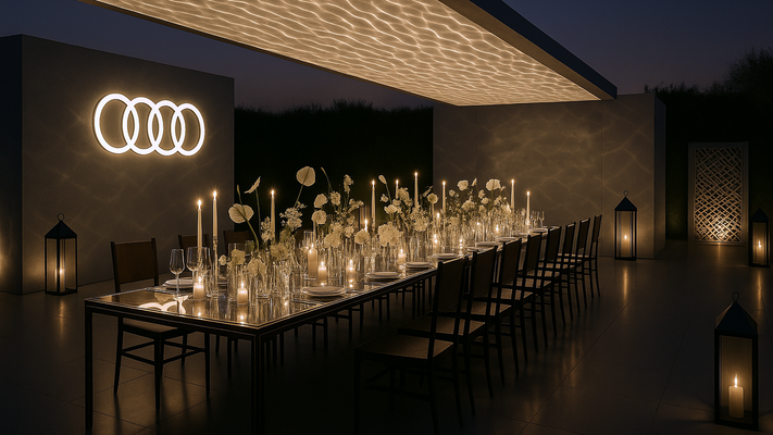As a host to creators, collaborators, and premium showcases, The Meld mirrors Audi’s mindset : forward-thinking, cultural, and community-focused. And with its neutral yet elevated aesthetic, it serves as a perfect blank canvas to subtly introduce the warmth and spirit of Ramadan through lighting, texture, and cultural details without compromising Audi’s modern identity.