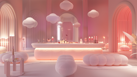 Inspired by the blush’s bouncy, cushion-like texture, the event unfolds inside a pillowy landscape where the boundaries between interiors and the clouds dissolve. Think velvety plush textures, soft pink lighting pouring through sheer curtains, and cozy cloud-like pieces for seating, all imagined in a palette reminiscent to that of the hero product’s new shades. There’s a dream-like softness to the space, evoking a fantasy world that feels light, airy, and intentionally feminine.